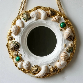 Эксклюзивные декоративные зеркала ручной работы — уникальный, необычный, фактурный, но изящный элемент интерьера, способный выгодно подчеркнуть каждый уголок пространства. Изысканные и эффектные настенные украшения для интерьера с натуральными камнями, морскими ракушками и золотой поталью похожи на дорогие ювелирные изделия.